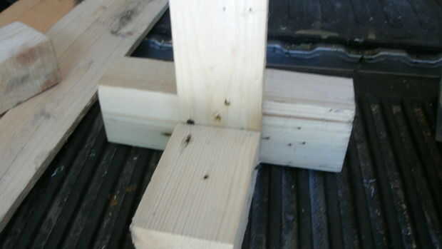 Realmente no hay demasiado involucrados. Usé a los espaciadores de madera de la plataforma como una base en un arreglo de "T". Esto proporciona peso adicional en la parte inferior e hizo la torre menos borracho. Entonces corté 2 lados y una parte posterior hacia fuera de la estrecha madera 3 1/2" de ancho. Soy alta así que hice mi torre donde el recipiente superior está a nivel de los ojos.