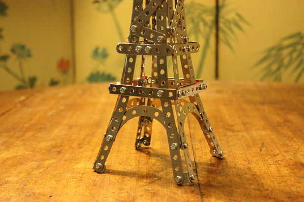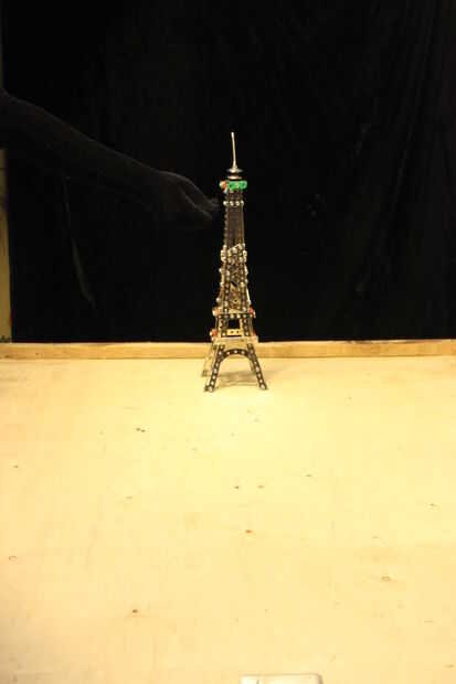 La primera parte de la película; la construcción de la torre, fue asesinado simplemente contra la madera de la mesa, es una madera de fruta bien usada, que agrega otra vez a la sensación retra del juguete de construcción.
