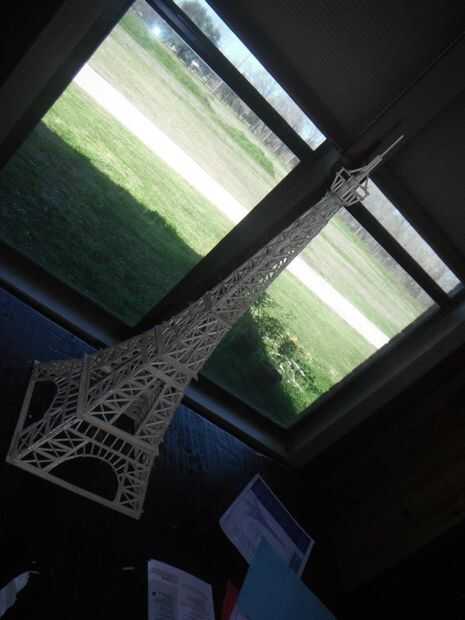 tener un estudio de diseño basado en París, necesitamos absolutamente una torre Eiffel. Así que, por qué no lo que es grande y naranja, como le FabShop. Gracias a la creación de B9, que ya había diseñado uno, sólo tuvimos que usar Netfabb para cortar