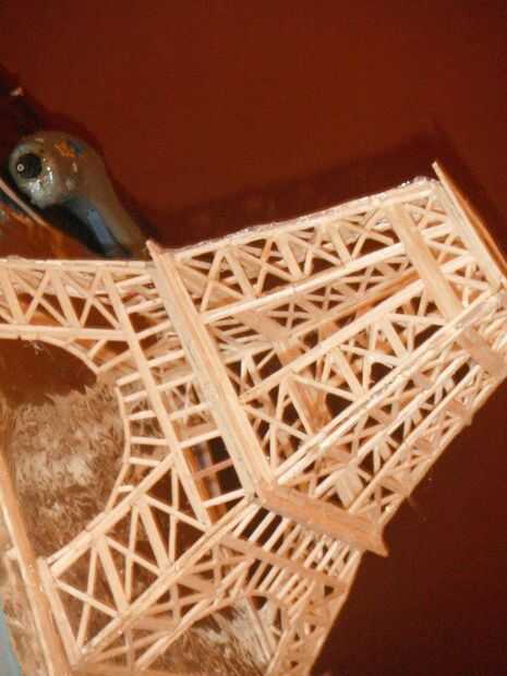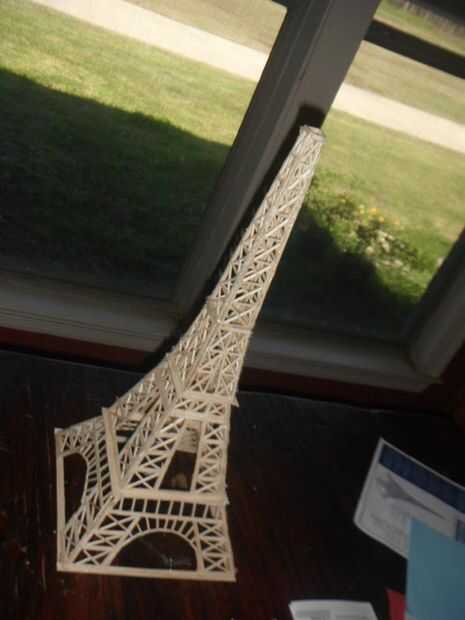Este Eiffel se construye fuera de los partidos. Se cortaron en trozos pequeños. Las fotos son en orden de cómo construir su torre eiffel. Fue un proyecto francés 2.