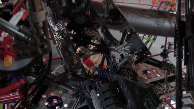 esta es mi primera máquina de la bola, creo que es bastante bueno para mi primero que utiliza Tornado96 y Shadowman39 de alternando elevación del brazo. Había basado en una trayectoria que se enrolla alrededor de una pequeña torre que las bolas rueda
