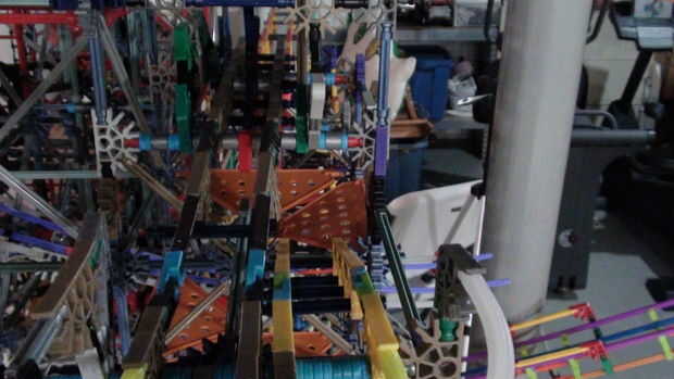 esta es mi primera máquina de la bola, creo que es bastante bueno para mi primero que utiliza Tornado96 y Shadowman39 de alternando elevación del brazo. Había basado en una trayectoria que se enrolla alrededor de una pequeña torre que las bolas rueda