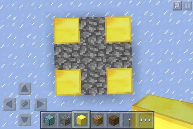 reacter bajo le da un montón de cosas interesantes, a veces incluyendo una barra de oro o dos!Paso 1: 4 obtener oro bloquea y colocó como este, con un espacio entre cada uno.Paso 2: , Poner adoquines entre el oro.Paso 3: a continuación, poner la base