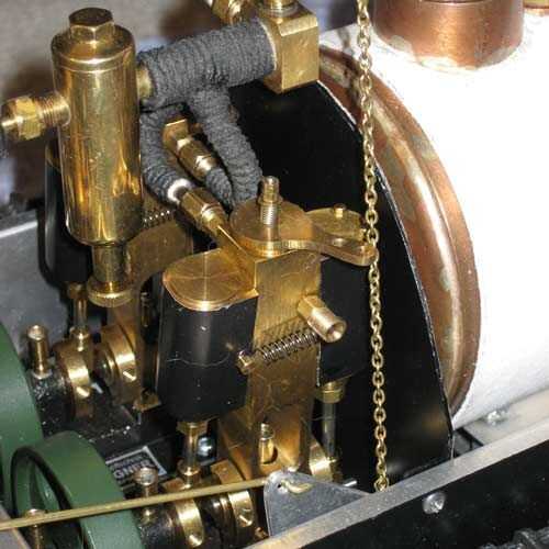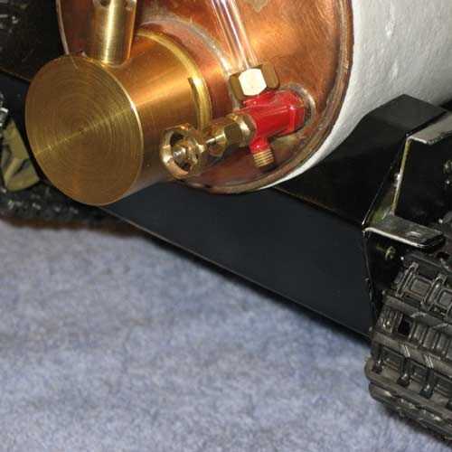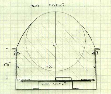 El protector de calor se ajusta entre la caldera y motores y sobre todo evita aceite de llegar a la caldera y fumar. Es una placa de aluminio de 4" de alto con tapa curvada más bridas laterales e inferiores. La curva sigue la caldera entonces ángulos hasta los lados del chasis. Un hueco en la parte inferior es para la tubería de combustible. En la caldera lado se pega un pedazo de papel de fibra cerámica. Tornillos de metal a través del chasis en ambos lados asegure.
