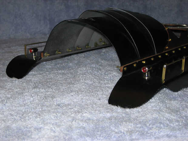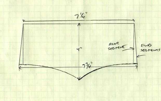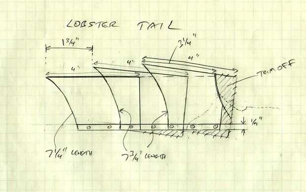 Los segmentos de la cola se superponen por lo que cualquier par determinado de segmentos comparte uno o dos orificios de montaje común. Tiras de caoba (1/8 "x 1/4") dan estructura para sostener inicialmente los segmentos juntos.