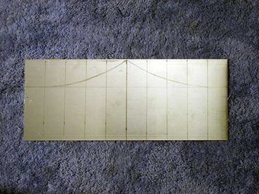 Dibujado patrones sobre 0,032"(1/32") K & S aluminio, marcada simetría con una regla y comenzó a cortar. Si tienes el agarre, el aluminio de K & S es lo suficientemente suave como para cortar con unas tijeras. De lo contrario usar tijeras de metal, Sierra de marquetería, cortadora de metal, etc.... Mantener un archivo útil para limpieza de bordes afilados.