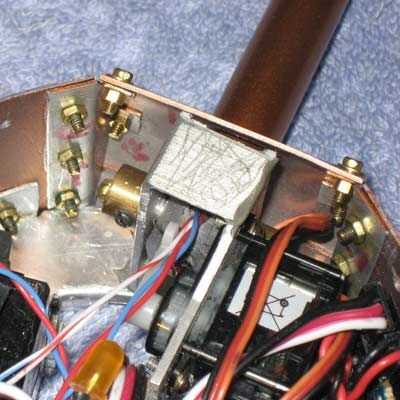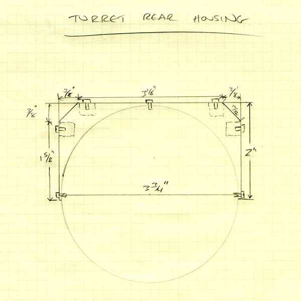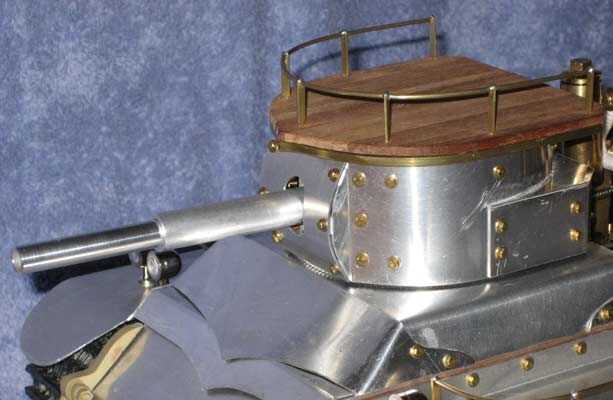 La parte superior de la torreta se hace de 0,064"(1/16") hoja de aluminio, con tiras de caoba pegadas. Para sujetar la parte superior el cuerpo de la torreta, se pegan varios soportes en L de aluminio de chatarra en.