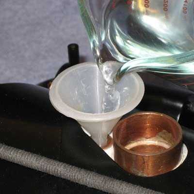 Hervir agua destilada. Evitar "purificado" o agua del grifo ya que minerales le falta el vidrio de vista de la caldera. Hay algunos argumentos de la gente sobre lo que es mejor. Agua destilado pura puede ser levemente corrosivo. Por lo tanto, algunos sugieren agregar un - poco - de agua del grifo para el agua destilada. Algunas personas prefieren el agua de lluvia.