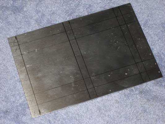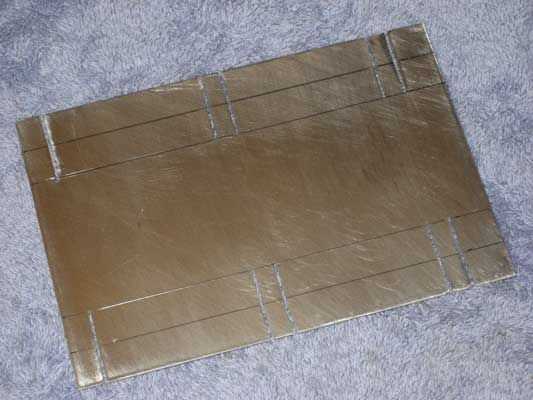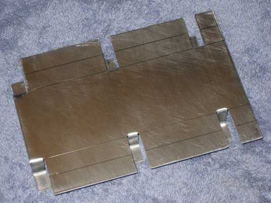 Colocar un 4 "x 6" pieza de 0,064"(1/16") de aluminio sobre los soportes de suspensión y marca donde quieres las pestañas. Corte 1" las ranuras con una sierra para metales o de vaivén y doble las lengüetas como se indica.