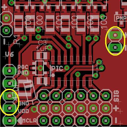 En la parte inferior de la PCB son almohadillas de puente para pasar por los transistores externos. Puente las almohadillas si no utiliza los transistores.