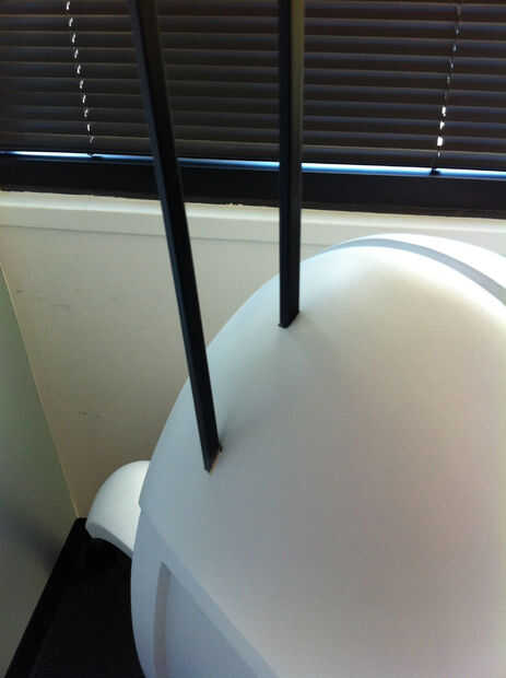 Fue bastante difícil trazar los orificios para la fijación de la antena. Para asegurarse de que no vayan todo distorsionados, graba firmemente a un pedazo de cartón por lo que actuaría como una sola pieza hasta que fue asegurado al cuerpo principal. Trazar los orificios cuadrados proyectados en una pared curvada fue una experiencia muy interesante - se convirtieron en diamantes extrañamente distorsionada. Me aseguré de cortar el agujero superior primero y luego se deslice en la primera etapa de la antena antes de cortar el otro agujero. Una vez que los agujeros fueron cortados a la profundidad debida, solía pequeñas astillas de madera de las barras de metal en lugar de la cuña y los cortó a ras con la superficie del cuerpo. No quería utilizar el pegamento en caso de que cada vez necesitaba del cajón hacia arriba y la figura de transporte.