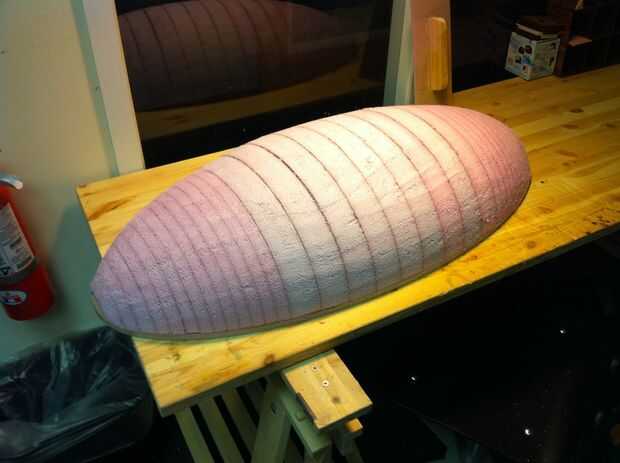 Pegué los subconjuntos de espuma a las elipses MDF con PowerGrip pegamento ya que es bastante grueso y no derrita la espuma rosa. Una vez curado el pegamento, comencé el acabado que forma con el Sureforms. No pasó mucho tiempo para obtener la forma entera a una superficie lisa agradable sólo asegurándose de que no trabajo cualquier zona tanto que yo por debajo de la esquina interior de cada paso de la escalera. Utilizando un Sureform largo y lijado bloque mantendrá su forma convexa y muy suave.