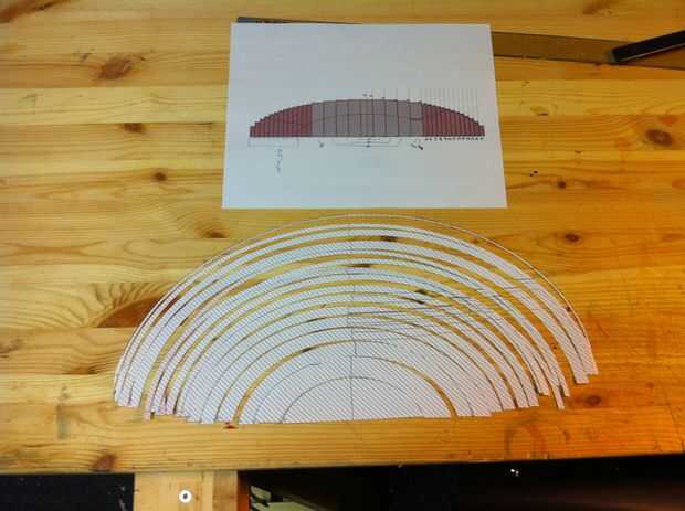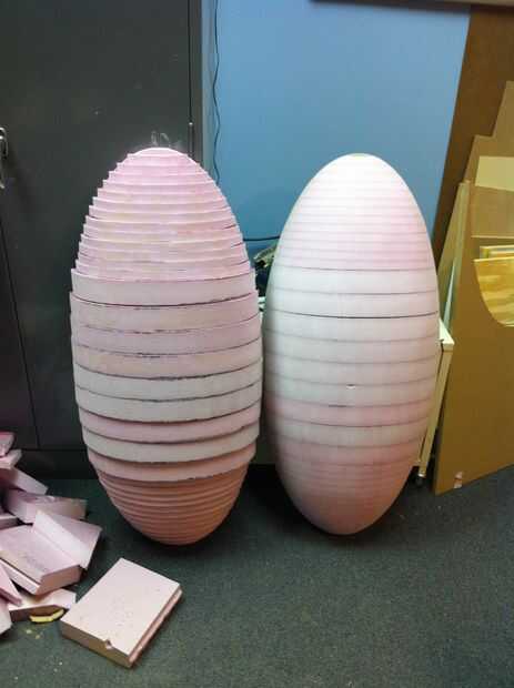 En este caso, la forma elíptica, orgánica podría realizarse precisamente * tomando un modelo digital y corte en unas pocas capas de docena. Decidí hacer mi rebanadas a través de la cintura de la torreta ya que podrían caber en una hoja de papel 11 x 17. En SolidWorks he creado el formulario base giratoria una elipse y luego exprimir para hacer una forma de rombo que llamo el huevo. Luego usé el grueso de mi espuma para crear láminas a través de esta forma. Tuve que recordar cada rodaja debe estar más delgado parte de esa área desde que talla de extra y no relleno en los escalones que desarrollarían inevitablemente de la pila. He utilizado hojas gruesas hacia el centro, donde hay apenas cualquier cambio en el perfil a través de varias piezas, y luego thinner las piezas hacia los extremos donde el perfil cambia más drásticamente.