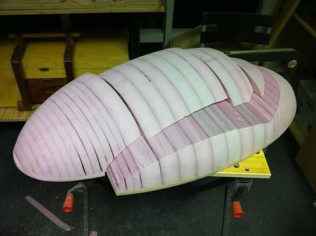 Ahora que todas las piezas fueron creadas en la espuma, todo lo que tenía que hacer era fibra de vidrio sobre ellas. Tontamente, decidí fuera barato en fibra de vidrio y volver a utilizar mis restos para las capas refuerza entre. Esto condujo a una superficie realmente abultada y llena de burbujas que llevó para siempre a fijar. Estoy seguro de que me pasé al menos la mitad de mi tiempo en quejarse sobre las imperfecciones superficiales y vacíos en la fibra de vidrio. Si sólo había utilizado trozos más grandes y tenido más cuidado cuando se les establecen, las cosas habrían ido mucho más suaves. (Juego de palabras!)