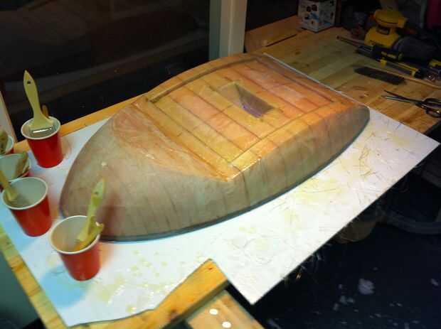 Sólo fui capaz de fibra de vidrio sobre 2 grandes superficies una noche simplemente porque no tengo espacio suficiente para almacenar todas las piezas como cura, para ello todas las partes llevó mucho tiempo. Empecé con las mitades del cuerpo principal y el exterior de las alas. Necesitaba esperar hasta que el cuerpo principal fue curado y algo suave antes de que pude formo el interior de las alas donde tendrían que sentarse a ras con la superficie.