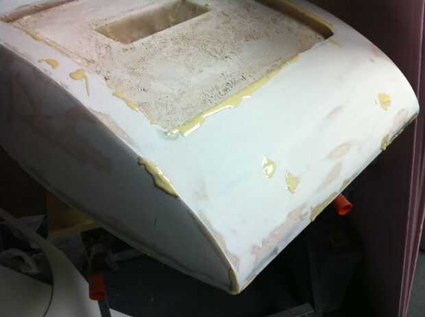 Bondo tiene una propiedad interesante que va desde mocosa goo rojizo a plástico duro en aproximadamente una hora, pero para algunos el tiempo mientras está curando, puede tallarlo como es chocolate caliente. Es mejor recordar desprender el peor de los golpes con un Sureform en esta ventana crítica, de lo contrario pasarás muchas horas extras trabajando en ello con lija de grano 60.