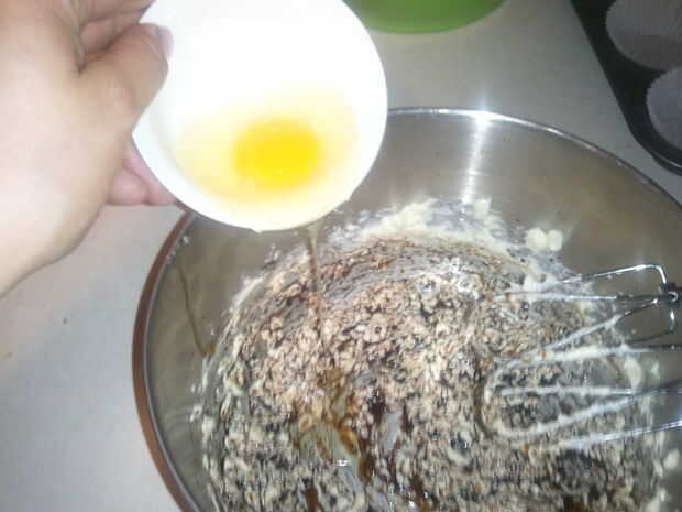 Añadir los dos huevos, uno a la vez, batiendo 30 segundos después de cada uno.