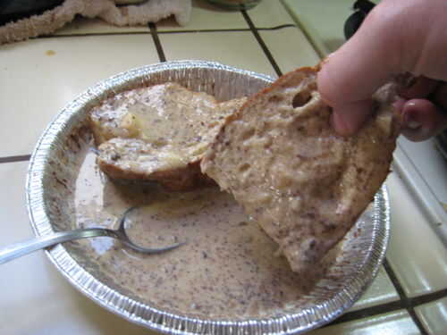 5 Coloque rebanadas en la mezcla de huevo, todos los lados de la capa fondo.