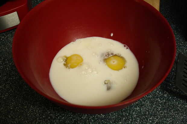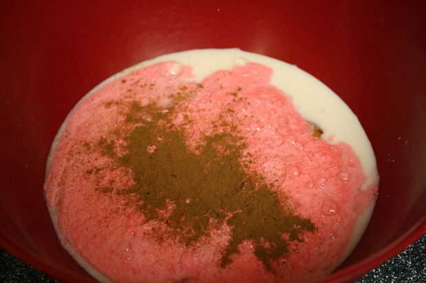 Paso 4: poner los huevos, leche, vainilla, canela, azúcar y Rockstar en la mezcla del tazón de fuente y mezcle bien.