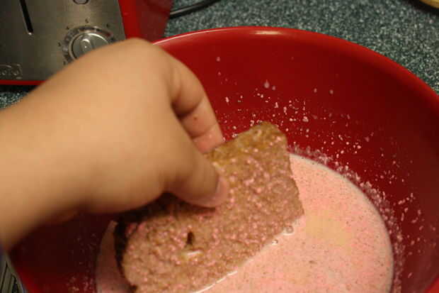 Paso 5: al finalizar el brindis, coloque el pan en el tazón de fuente de mezcla y dejar durante 15 segundos, luego dan la vuelta y repetir.