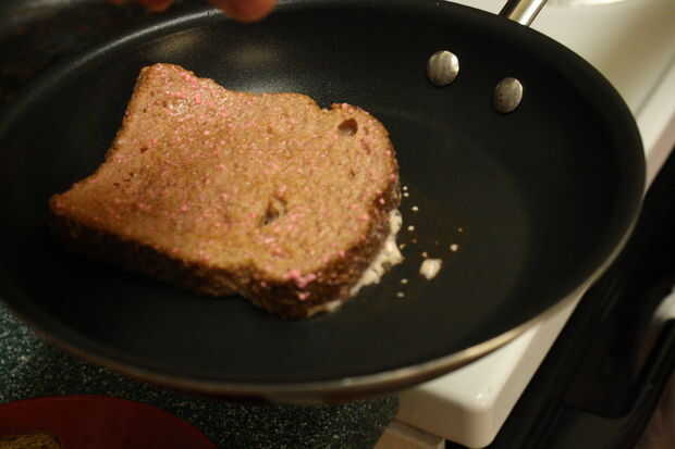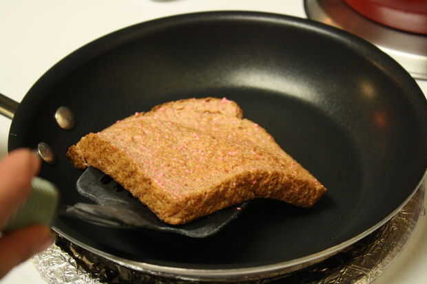 Paso 6: colocar la pieza empapada de tostadas en la sartén y cocine durante 5 minutos, dale la vuelta y repetir hasta logra una oscuridad deseada.