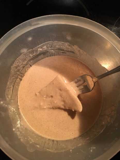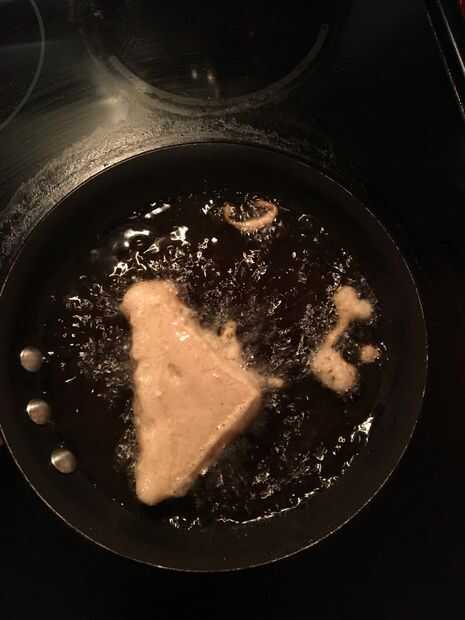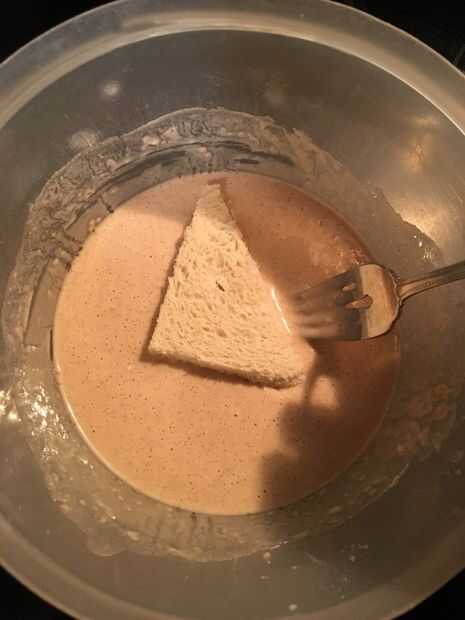 Cubrir ambos lados de pan en la mezcla y freír a un ligero color dorado.
