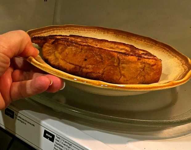 La torrija en el microondas durante 2-3 minutos dependiendo de tus vatios del microondas.