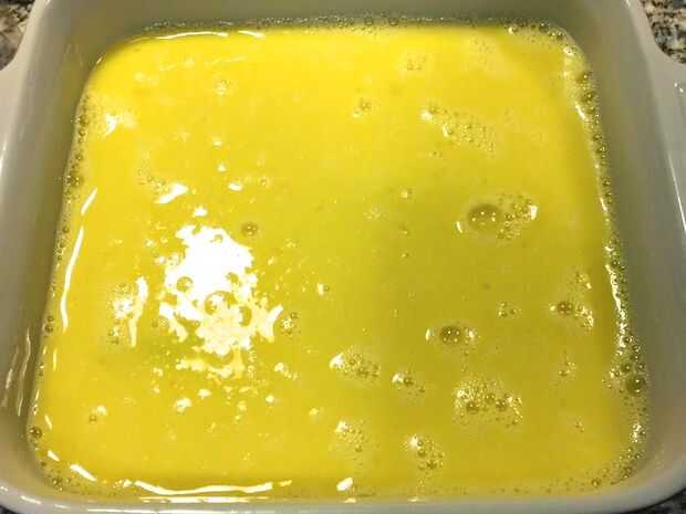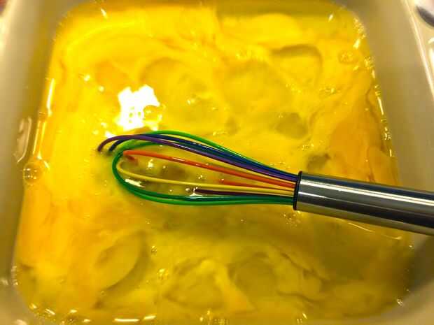 Bata los huevos hasta que las yemas y las claras se combinan.