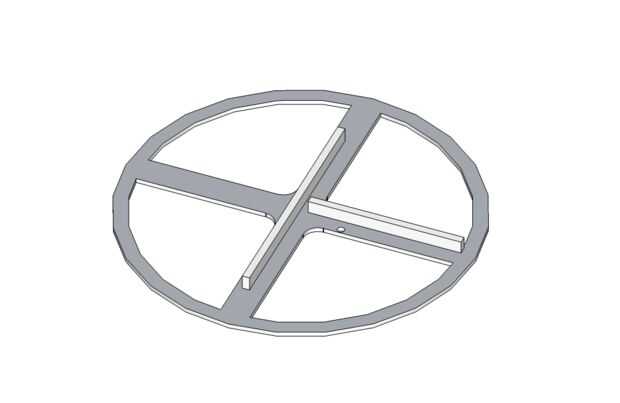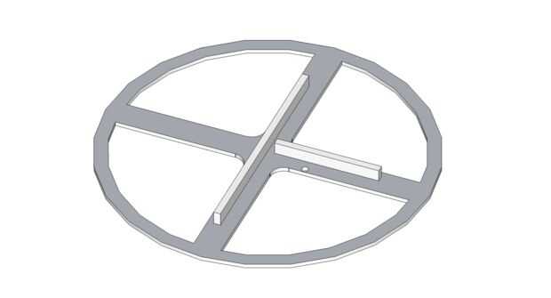 Las placas tienen un 1" círculo de diámetro exterior, unido por una cruz de brazos anchos radiales de 1". Todo el material de recorte han redondeado las esquinas, para que sea más fácil y más limpio para cortar. La imagen muestra este rincón redondo en el centro, pero fue utilizado en las esquinas exteriores. Esto permitió que las esquinas para ser perforados en una prensa con un 1" pedacito de Forstner y los cortes se hicieron de estos orificios de acceso con una sierra de vaivén.