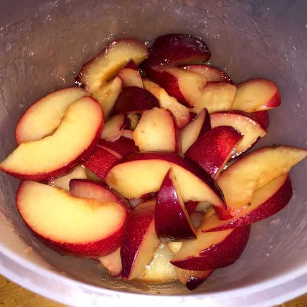 Comience por lavar y cortar tus ciruelas en rodajas pequeñas. Yo generalmente cuarto de primero e intentar conseguir unos 3 trozos de cada trimestre.