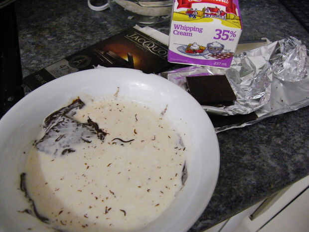 Agregue el chocolate picado hasta que se disuelva, dejar reposar en temperatura ambiente, removiendo una vez un tiempo hasta lograr la consistencia deseada
