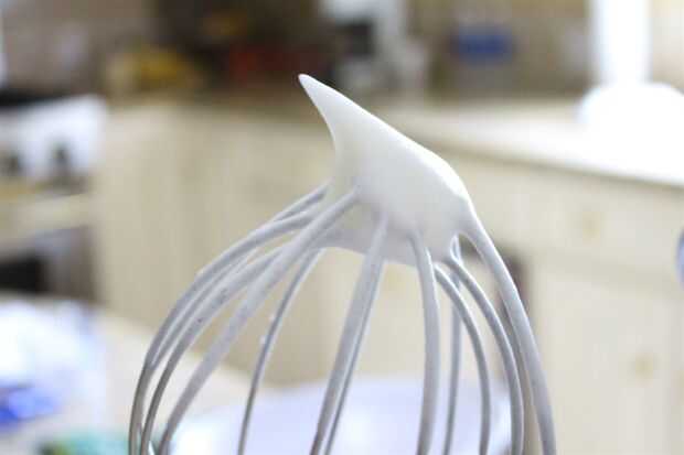 En un recipiente equipado con un mezclador eléctrico, pie, añadir el cremor tártaro a las claras de huevo y batir hasta que desarrollen formen picos.