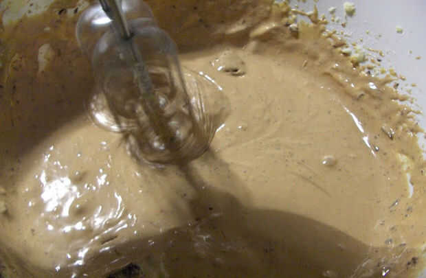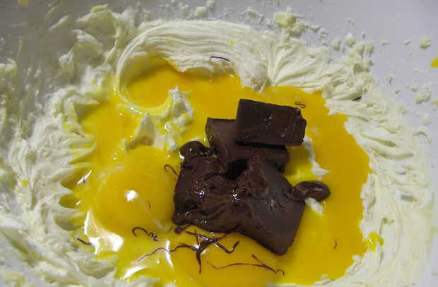 Una vez que todas las yemas se agrega en, verter en el chocolate derretido y batir durante 20 minutos