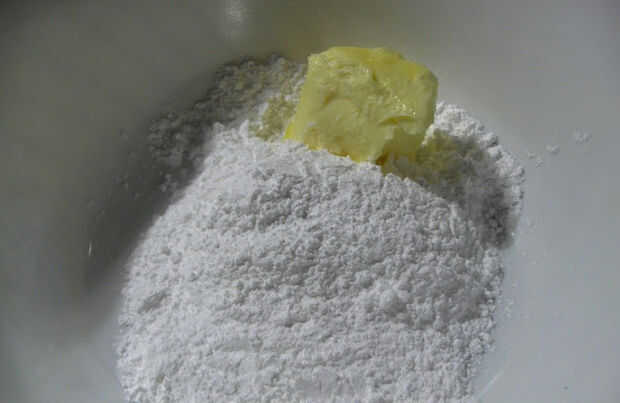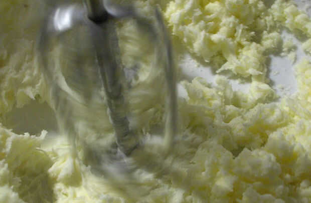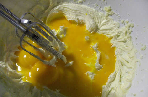 Batir mantequilla y azúcar glas y añadir en la yema de uno en uno
