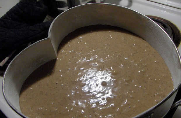 Verter la mezcla en un molde en forma de corazón y hornear a 350 F por 30 minutos o hasta que insertar un cuchillo en centro y salga limpio (por favor ver hacia fuera para su horno temperatura cada horno tiene diferencia de temperatura y a veces la exactitud no es confiable a menos que tenga la medida de la temperatura del horno)