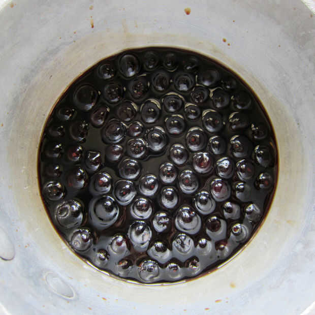 En una cacerola pequeña, Agregar vinagre balsámico, azúcar y los arándanos enjuagados. Llevar a hervir a fuego medio alto. Gire el calor a medio-bajo y deje reducir durante unos 30 minutos o hasta que la mezcla se vuelve espesa y es aproximadamente la mitad con que inició.