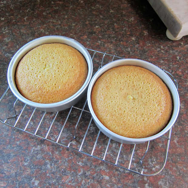 Retire las cacerolas del horno y enfriar sobre una rejilla de alambre durante 10 minutos antes de las tortas de pan. Deje que se enfríe tortas completamente.