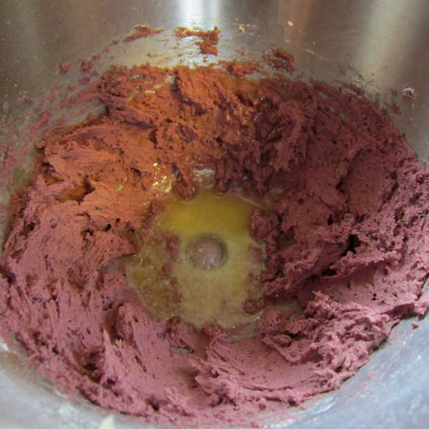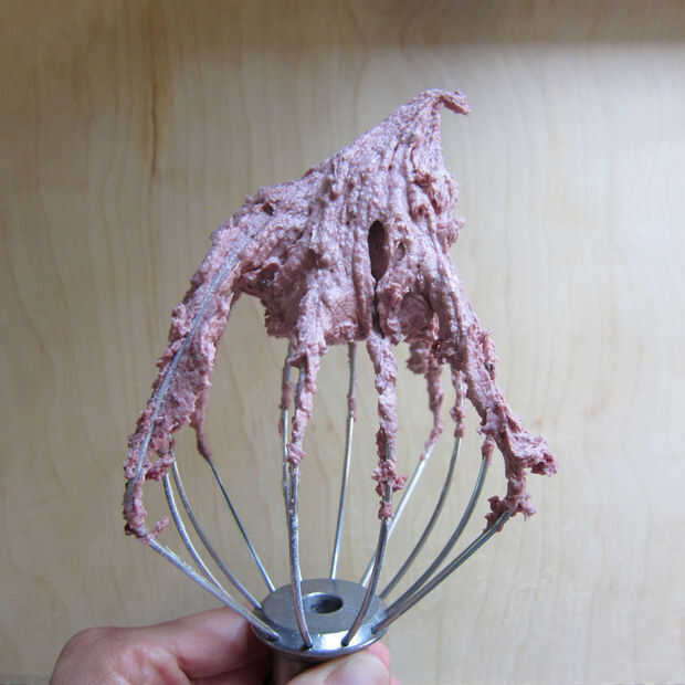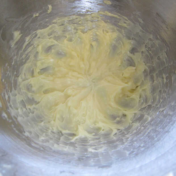 Después de la tercera Copa de azúcar la crema de mantequilla se convertirá en algo seco pero no grumosa. Derretir las dos cucharadas restantes de mantequilla en un tazón pequeño microondas. Añadir a la crema de mantequilla y bate en alto y ver que la magia ocurra! La crema viene junto a una consistencia perfecta!
