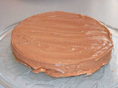 Cubierta con el segundo bizcocho y unte con el resto de la crema de praliné (en la parte superior y los lados).