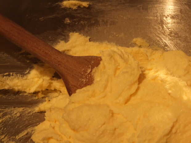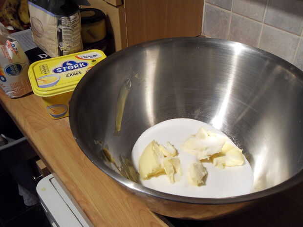 1) crema a la mantequilla y el azúcar en un tazón grande