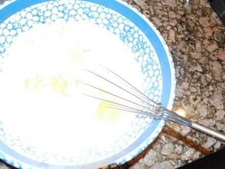 Mezclar los materiales. Vierta la mezcla para hornear en un tazón. Añadir los ingredientes adecuados y mezclar a la masa de la torta de forma. Asegúrese de que se mezcla hacia fuera todos los grumos de la mezcla antes de pasar.