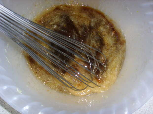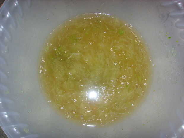 Luego rallar la cal hasta que tenga al menos 2 cucharadas de cáscara. Jugo de limón para obtener 3 cucharadas de jugo. Mezclar con agua en un recipiente separado de la mezcla de harina.