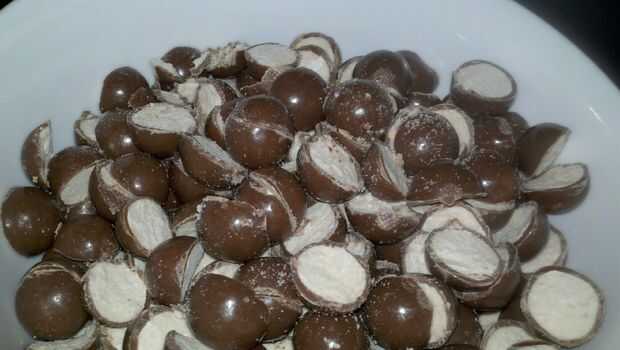 He utilizado bolas de chocolate Malta cubiertos, pero usted puede utilizar prácticamente cualquier caramelo que desee. Usted podría incluso utilizar pedacitos de cereal colorido.