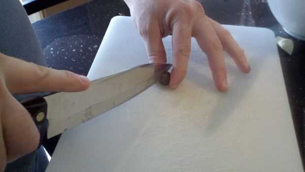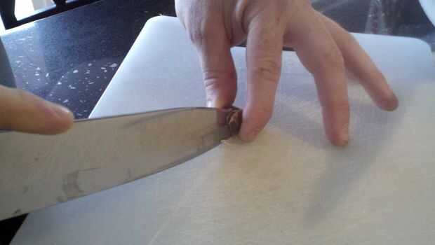 Por favor tener mucho cuidado con esto. Sería malo obtener sangre en esa exquisitez. Cortarse puede lastimar, también.