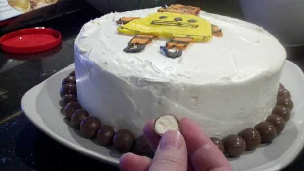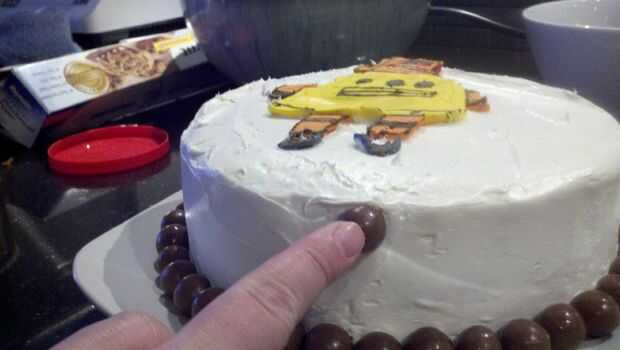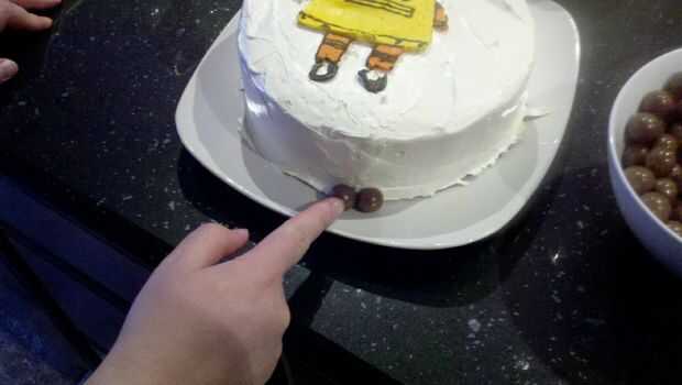 Para el anillo inferior, sólo tiene que colocar la malta bolas de uno en uno, suavemente empujando el glaseado para pegar.