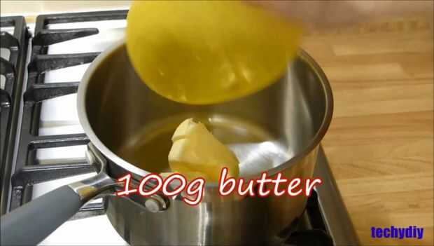 • Poner 100g de mantequilla en una cacerola y derretir a fuego lento
