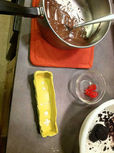 Bien, decidí llenar primero los botones de chocolate blanco. Entonces fundidos el chocolate regular y empezó a crear mi caparazón.
