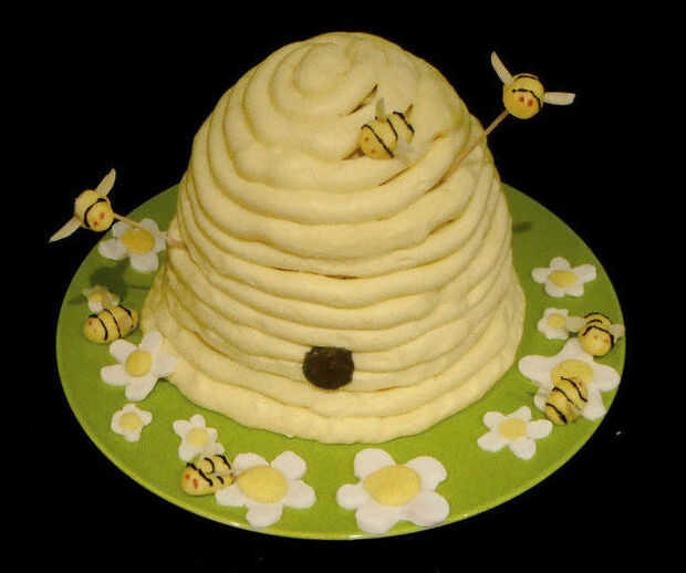 Este pastel no sólo es delicioso pero se ve fantástico y es muy divertido para hacer. Usted puede involucrar a toda la familia al hacer este pastel, y todo el mundo está seguro de participar en a la hora de comerlo! Está inspirado en una colmena natural con muchas flores y las abejas salpicadas para la decoración.