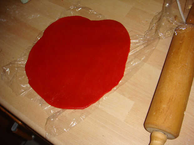 Si la pasta de almendras es genial la costa con el perno de balanceo. Para evitar que se pegue al pin de ponerla entre dos hojas de film de embalaje. El grosor depende de cuánto te gusta la pasta de almendras.