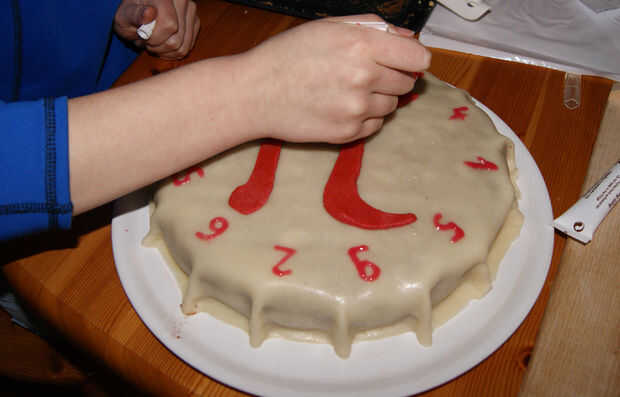 Si usted está satisfecho con el resultado puesto previamente cortado a Pi (o cualquier diseño que usted eligió) sobre el pastel.